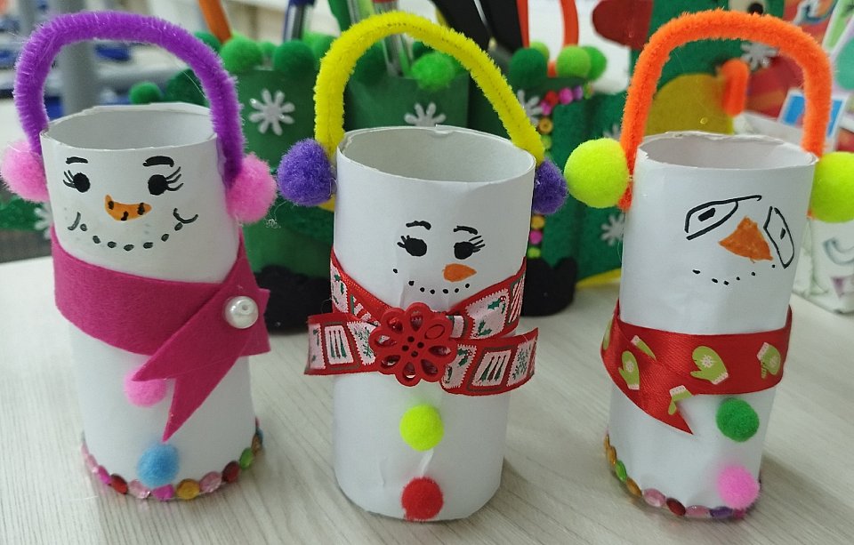 7-8 лет, поделка с использованием втулки, синельной проволоки, ленточек, бусин и помпонов.