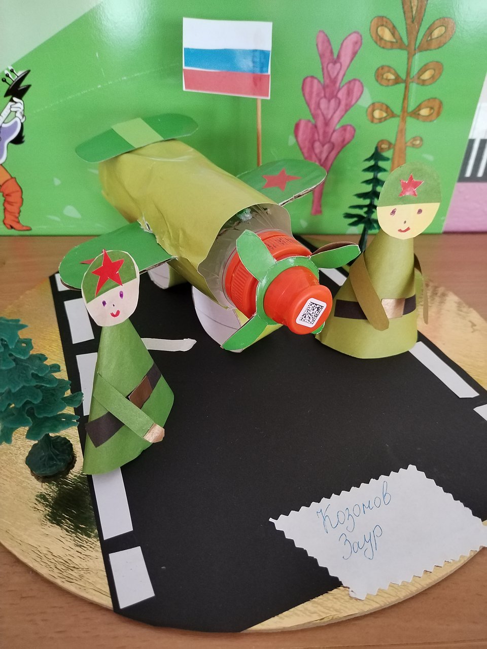 Бутылка, клей, фигурки, картон