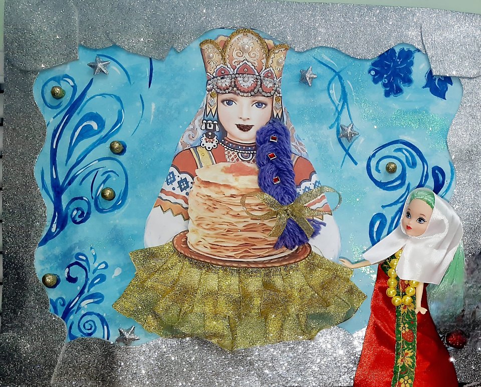Аппликация с использованием различных материалов: бумага, фоамиран и ткань, выполненная воспитателем