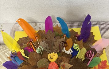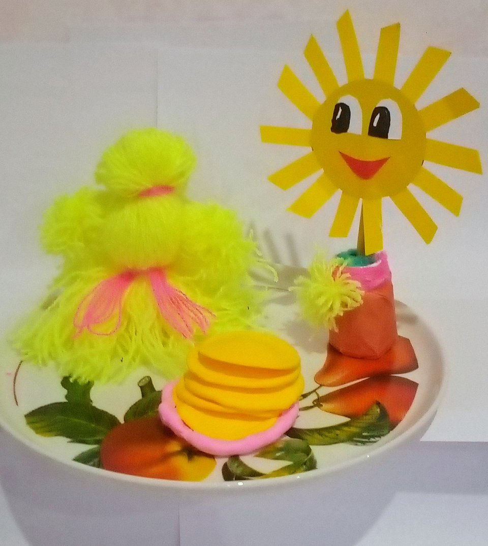 Работа выполнена из воздушного пластилина, цветных ниток и цветного картона