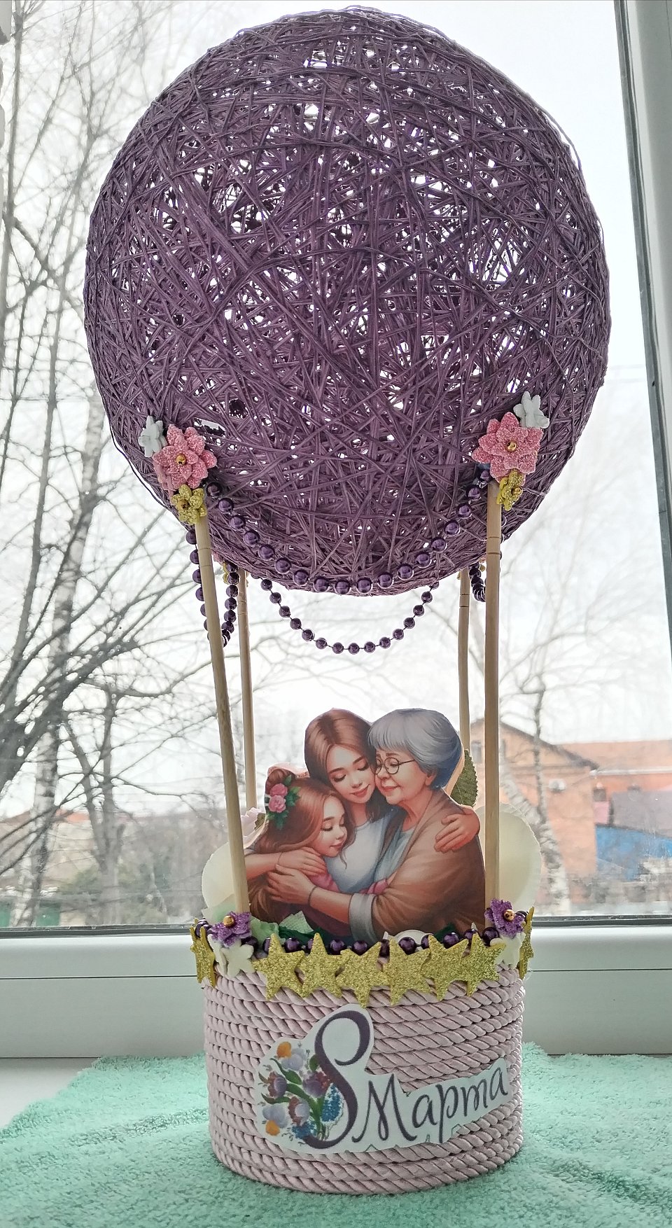 Нитки, клей пва, шар, картон, бусы