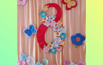 Букет ручной работы, выполнен воспитателем. Букет сделан из атласных лент в технике канзаши.