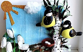 3-4года. Коллективная работа с помощью нетрадиционной техники. Материалы (краски, баночка, кисть, ватман)