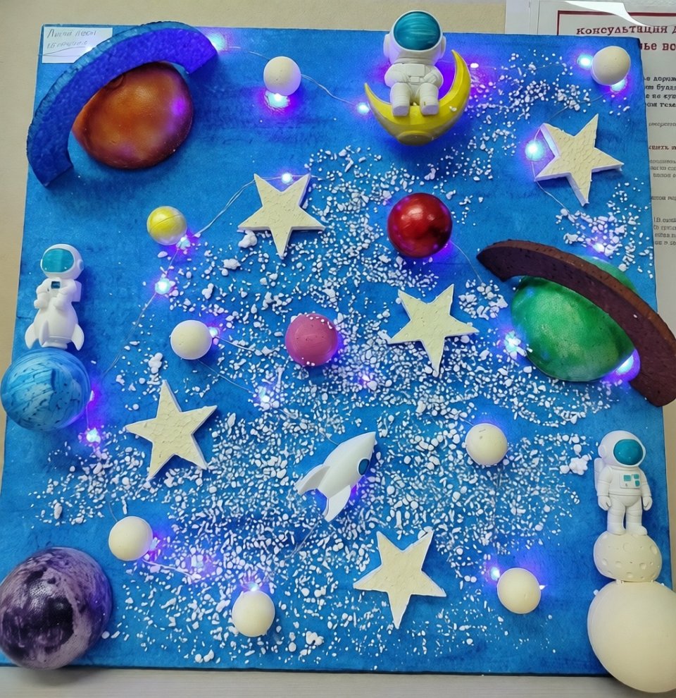 Материалы: пенопласт, гуашь, светодиодная лента, термоклей