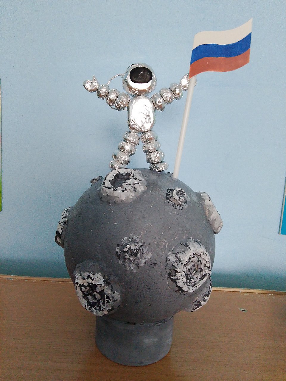 материалы: пенопласт,бумага, фольга,краска серого цвета