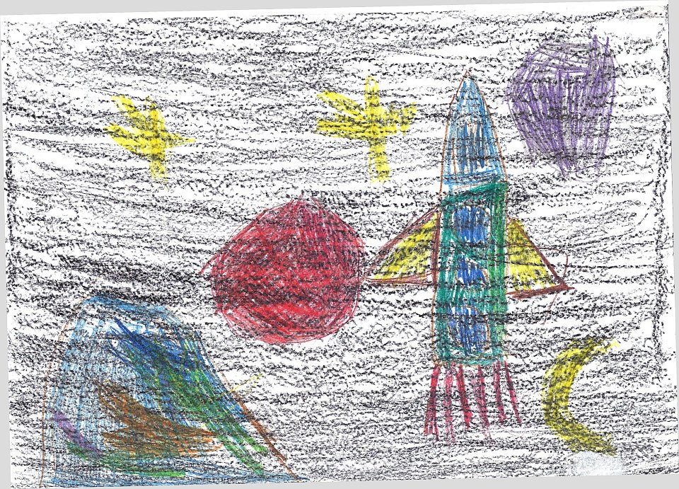 Возраст участника: 3 года. Техника рисования: рисунок выполнен в помощью восковых мелков.