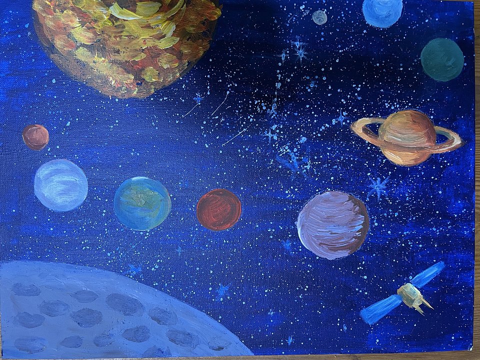 Выполнено на холсте красками Платоном в 7 лет