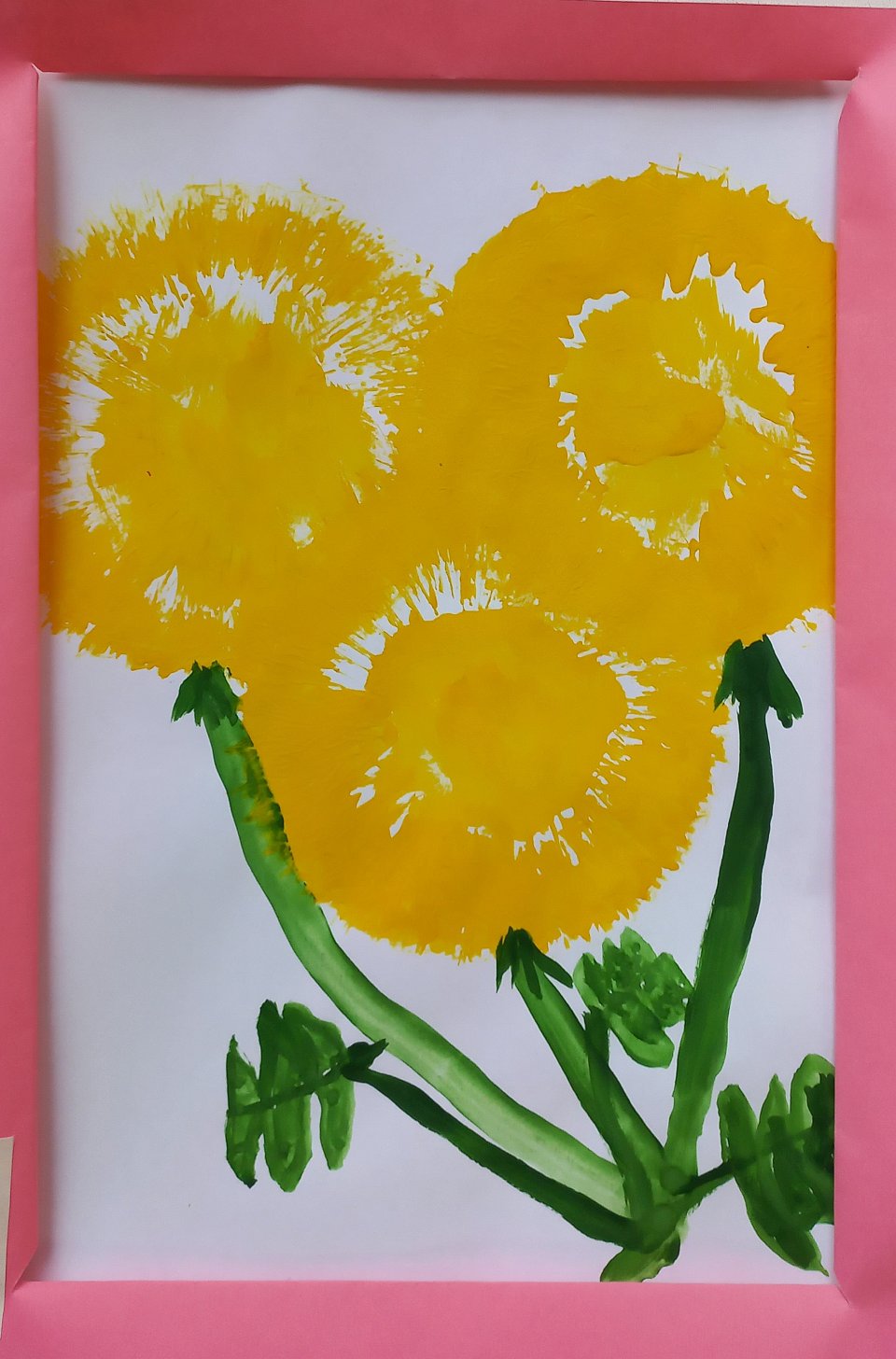 Работу выполнила участница 5 лет, при выполнении работы было задействовано нетрадиционное рисование с помощью втулки и кисти