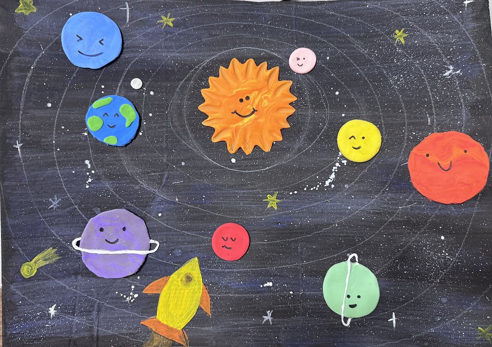 Тамерлан - 4 года, поделка. Материалы: легкий пластилин, гуашь, картон.