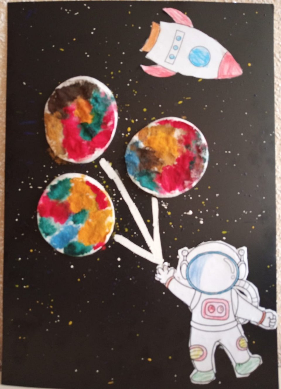 6 лет, аппликация, картон, бумага, ватные диски, гуашь