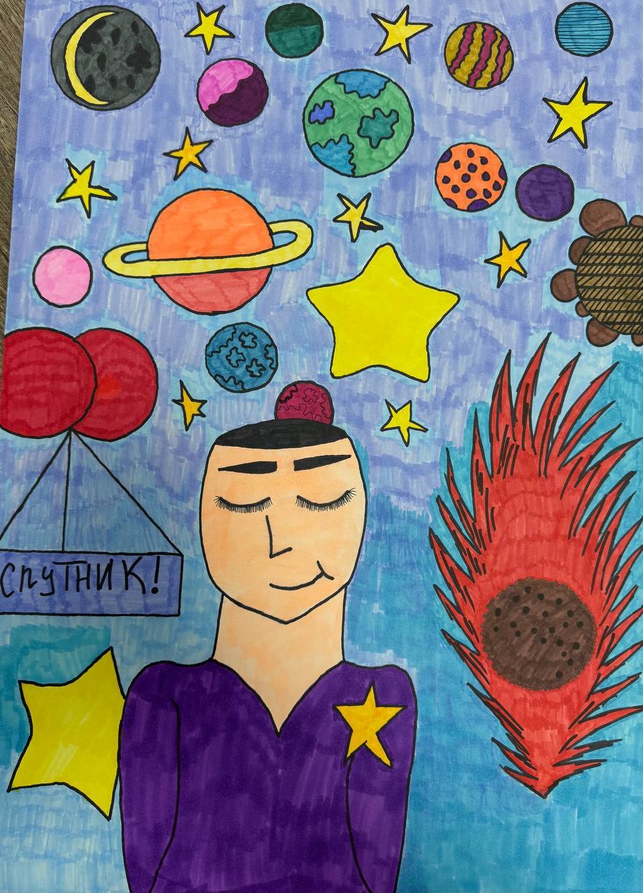 Возраст участника 9 лет, работа выполнена акварельными маркерами