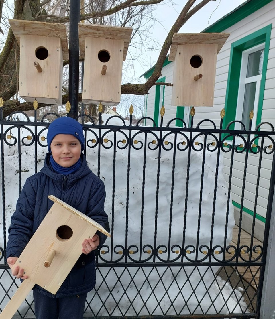 К прилёту скворцов мыс папой смастерили скворечники. Они получились очень уютные. Я очень люблю слушать их пение.