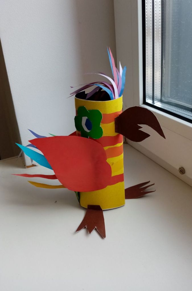 Игрушка на цилиндре выполнена в технике аппликация из бумаги и картона.