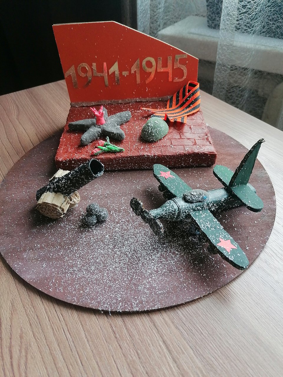 Хакимов Назар 4 года, Техника исполнения( Гуашь, пластилин, Клей, картон)
