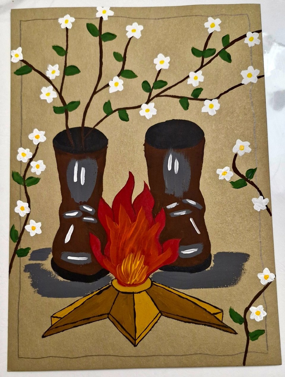 Работа выполнена совместно с куратором. В работе использовали цветной картон, простой карандаш и гуашь