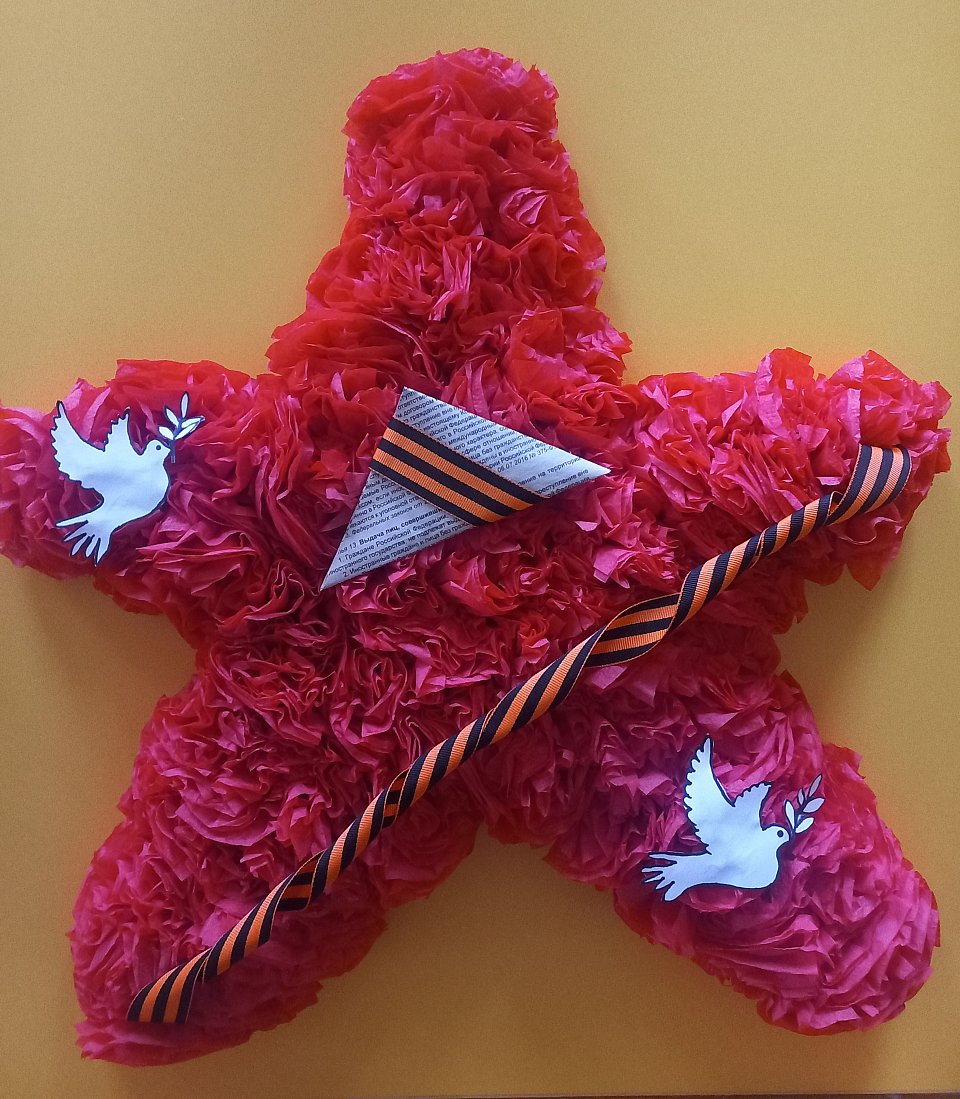 3,8 года. Поделка к 9 мая. Работа выполнена техникой торцевание из гофрированной бумаги.