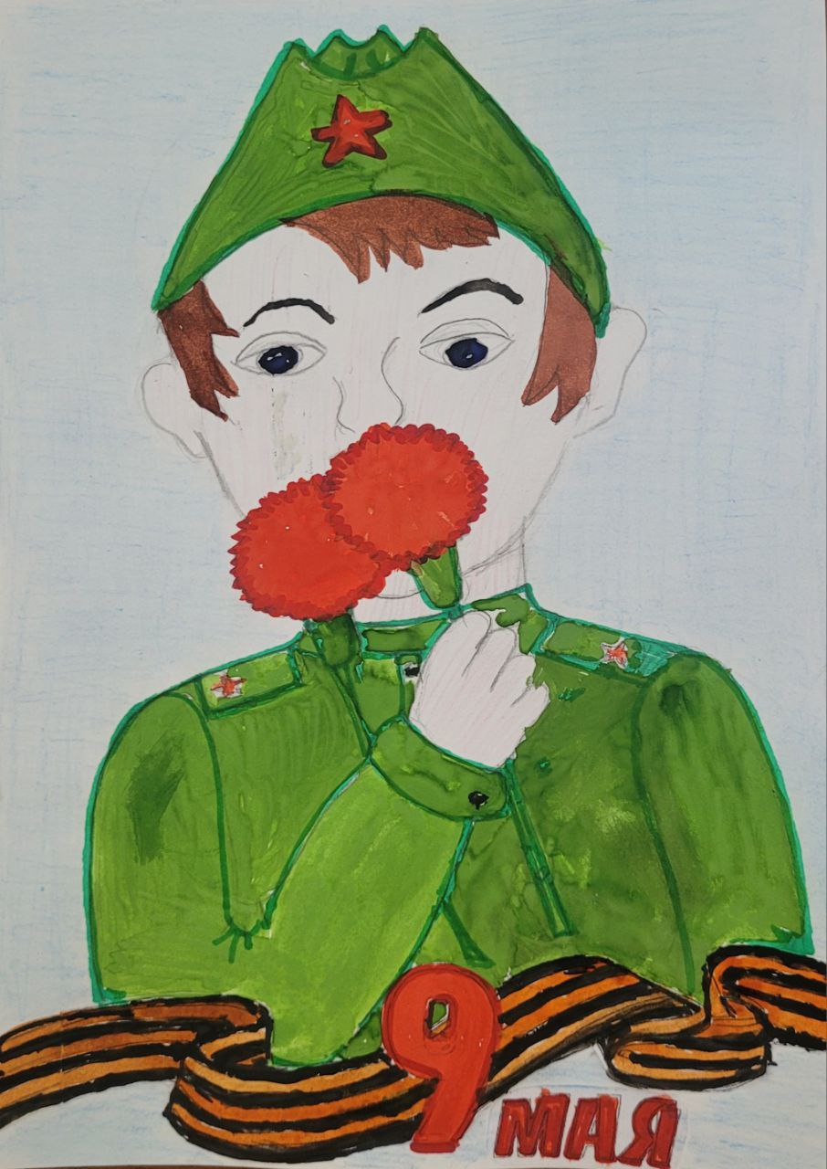 Работа выполнена учасником конкурса - ребенком с ОВЗ 10 лет в технике живописи на бумаге гуашью и карандашом