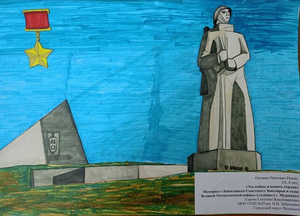 Родина художника Мурманск, где находится памятник, он ему очень дорог. Октавии 8 лет. Рисовала фломастерами и графическим карандашом