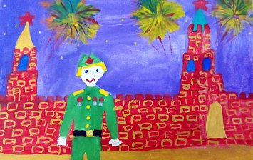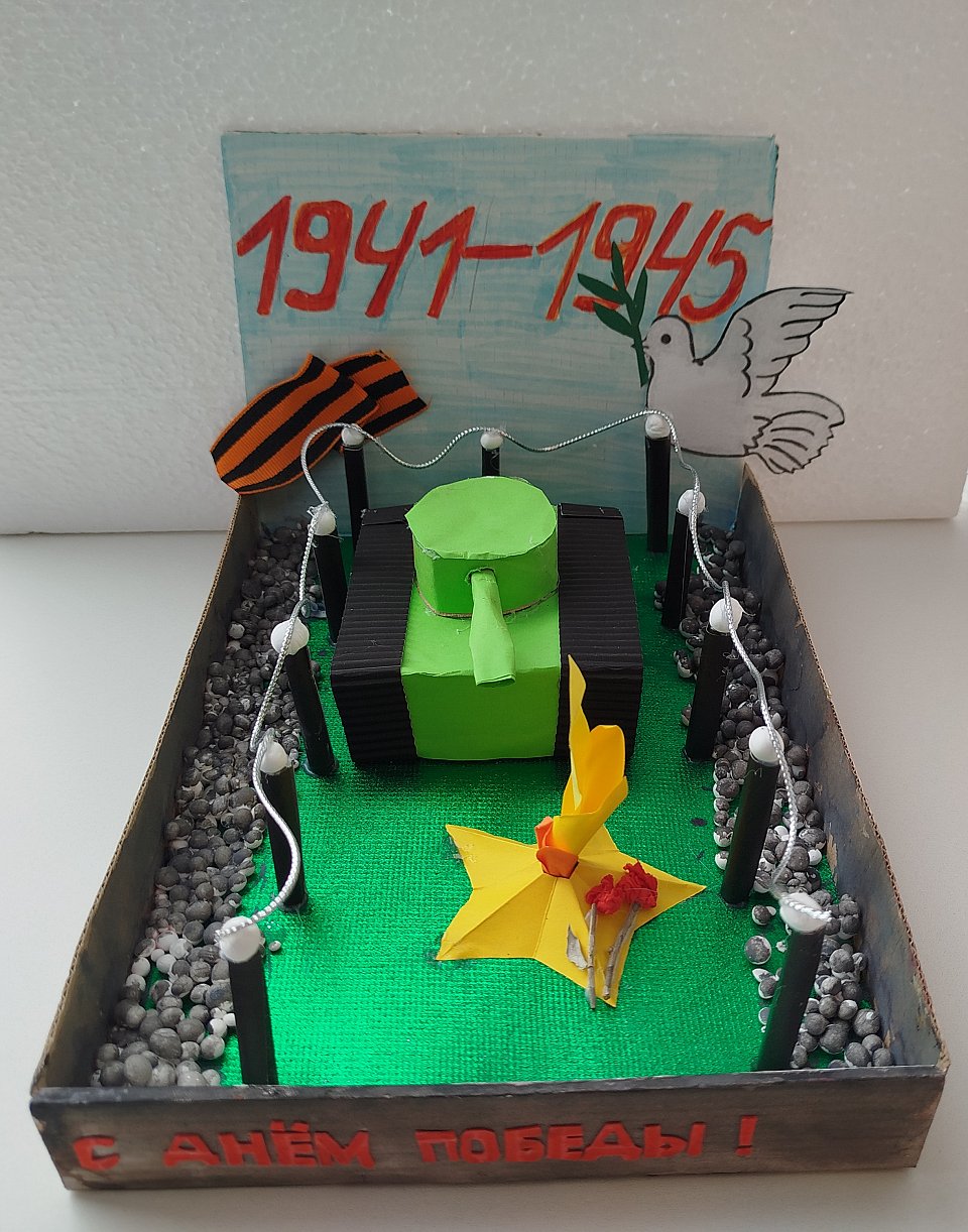 Танк выполнен в технике квиллинг, звезда и стена выполнена аппликация из бумаги.