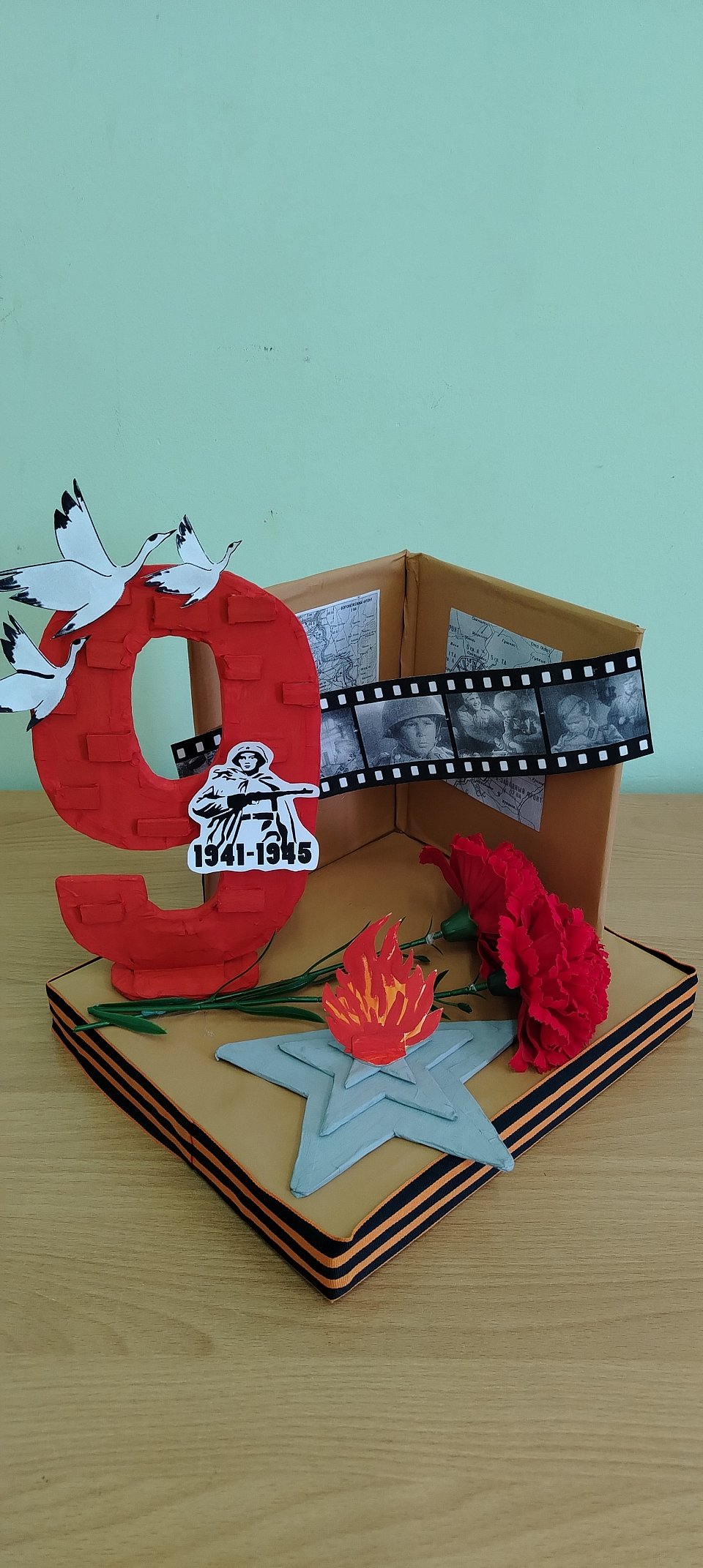 14 лет. Поделка сделана из картона: каркас путем обклеивания цветной бумаги. 9 покрашена красками.