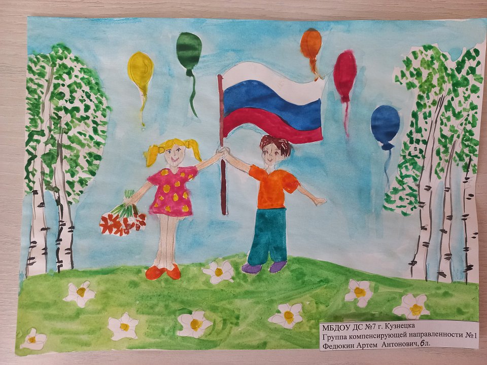 возраст участника 6 лет, рисунок выполнен акварельными красками и карандашами.