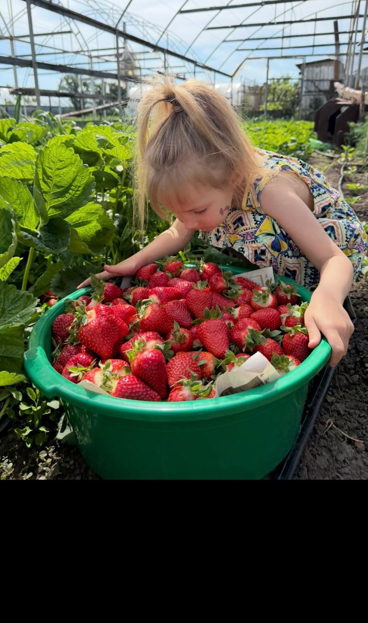 Авторское фото, ребенок 4 года , сама собирала у бабушки клубнику )