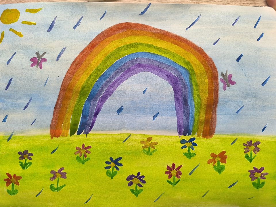 4 года. Рисование акварельными красками. Использованные материалы:акварельные краски, кисть, вода, альбомный лист