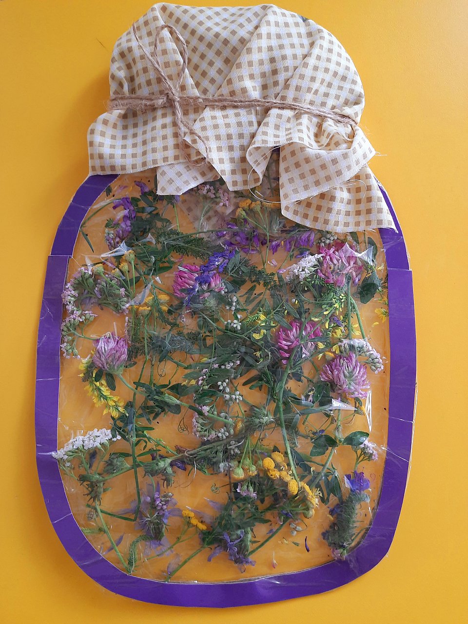Полевые цветы, картон, скотч, ткань х/б, шпагат