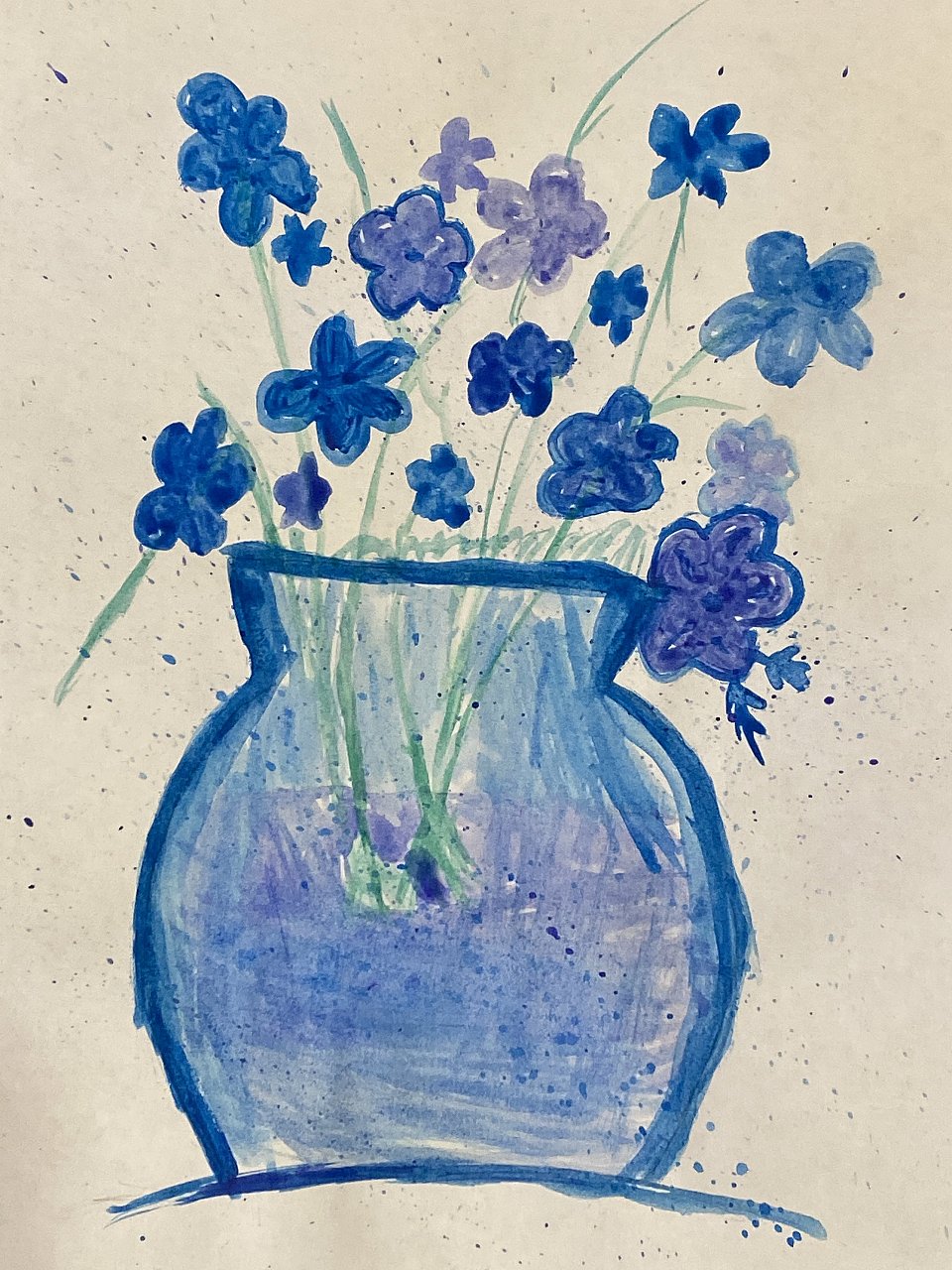 Владу 5лет. Рисовали цветы, увиденные на прогулке. Получился букет для мамы.