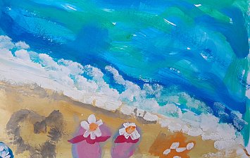 Работа выполнена в правополушарной технике рисования, материал - гуашь, возраст участницы 9 лет.