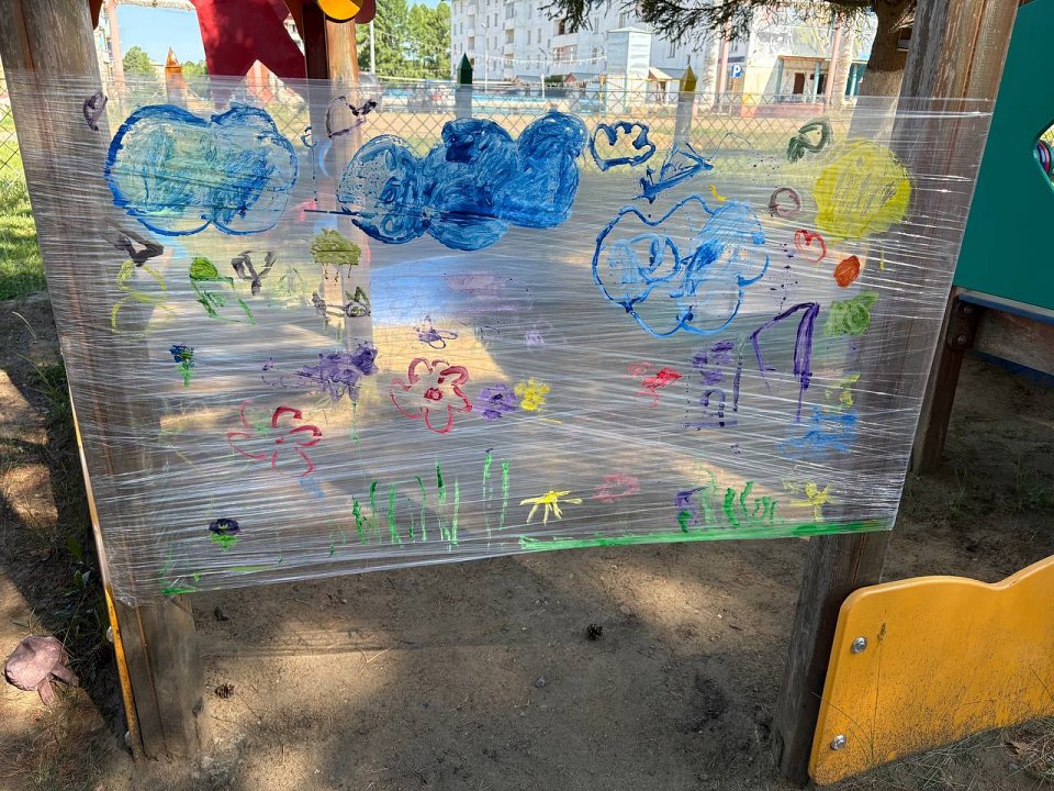 Ребята старших групп рисовали на пищевой плёнке гуашью и пальчиковыми красками.