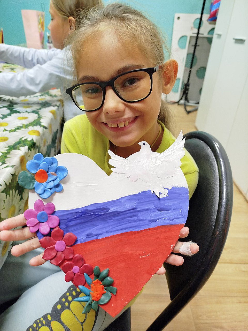 Работа Государственный флаг России выполнена в технике аппликация и пластилинография