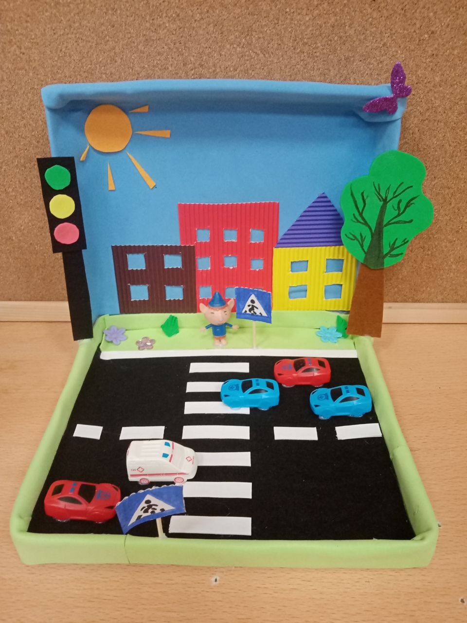 Поделка выполнена в смешанной технике (дизайн-макет) с использованием аппликации из фетра и гофрированного картона.