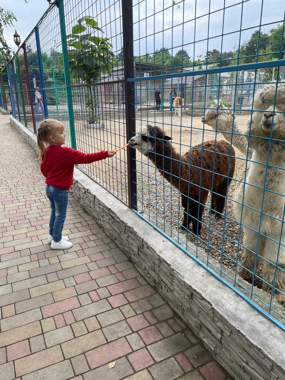 Наша воспитанница побывала в зоопарке и покормила удивительных лам , а также других птиц и животных.