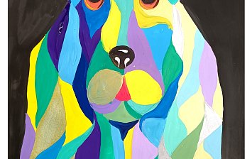 11 лет. Формат А3, гуашь. Шуточная творческая работа. Как будто медведь сфотографировался на документы.