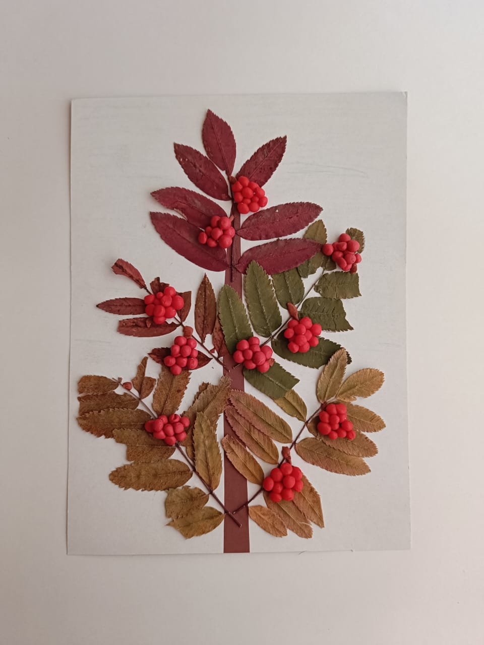 4 года, природный материал (листья рябины), пластилин, клей ПВА.
