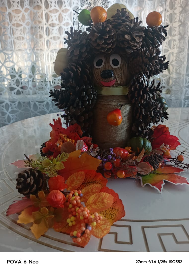 6 лет. Шишки, пластиковая бутылка, осенние листья.