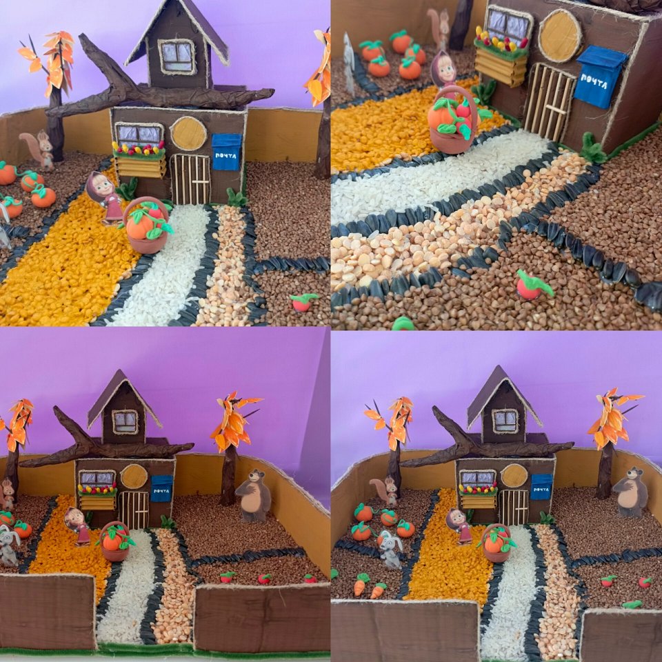 Материалы: картон, воздушный пластилин, крупы (рис, гречка, горох), семечки.