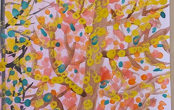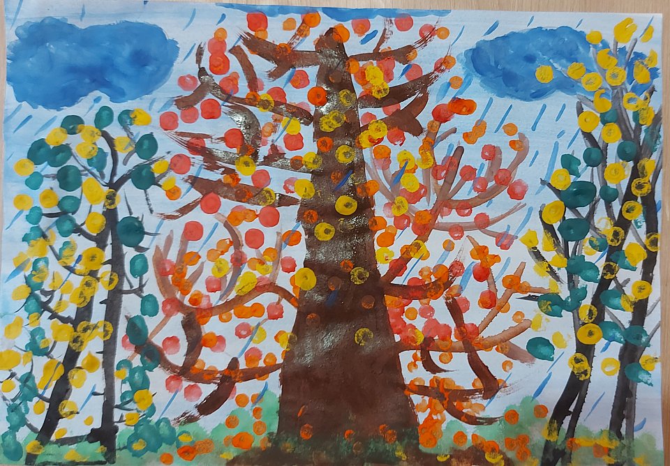 Первоклассник. Гуашь , акварель, рисование ватной палочкой, тычком.