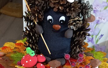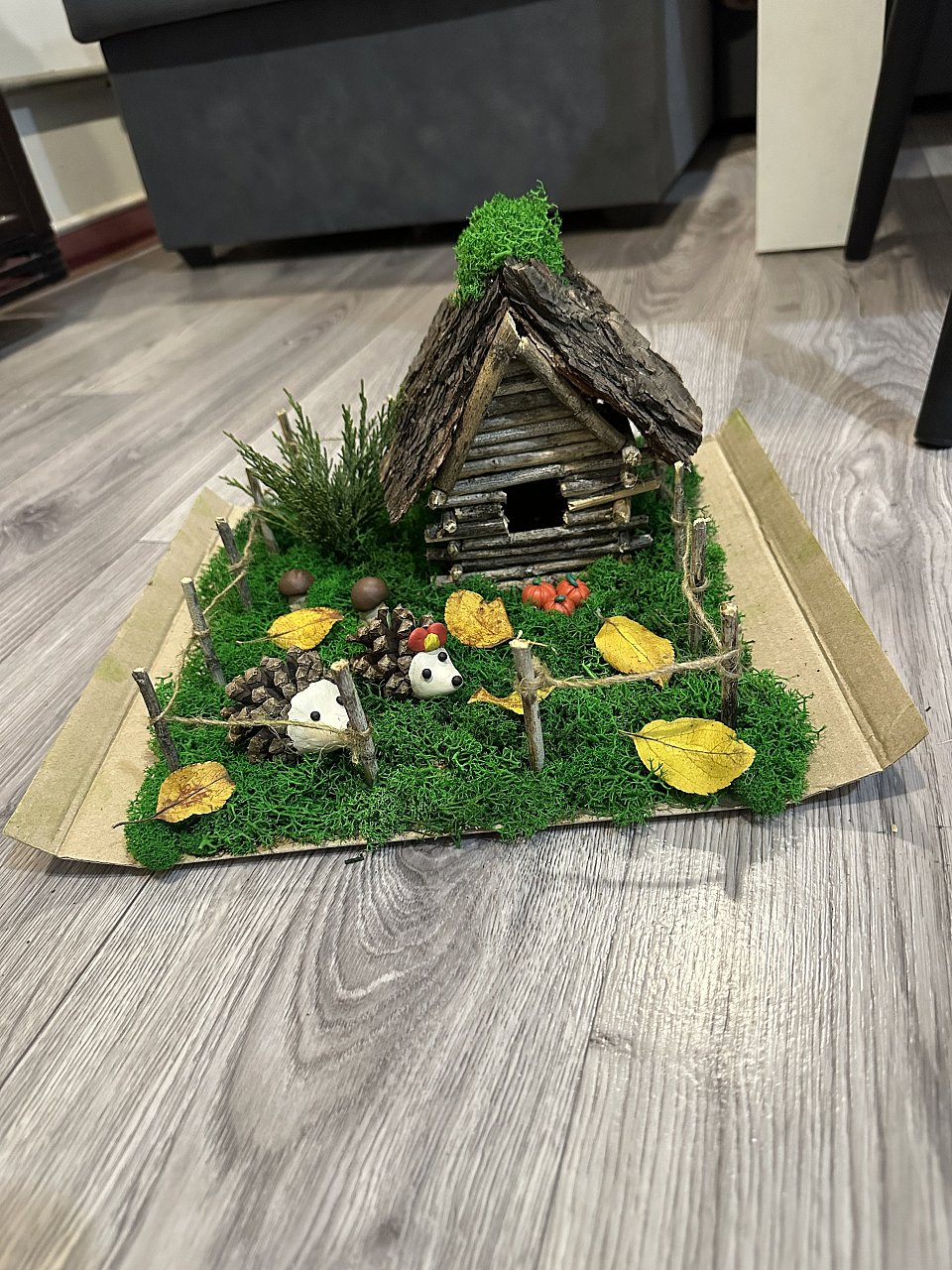 Василисе 7 лет. Работа выполнена с использованием природных материалов, а именно натуральных мох Ягель, сухие кленовые ветки, сосновые шишки.