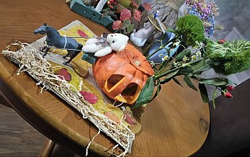 Вероника - ученица 1 класса, работа была выполнена в сотрудничестве с мамой и папой. Были использованы патисон, шишки, пластилин, гирлянда.