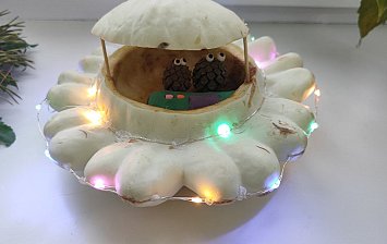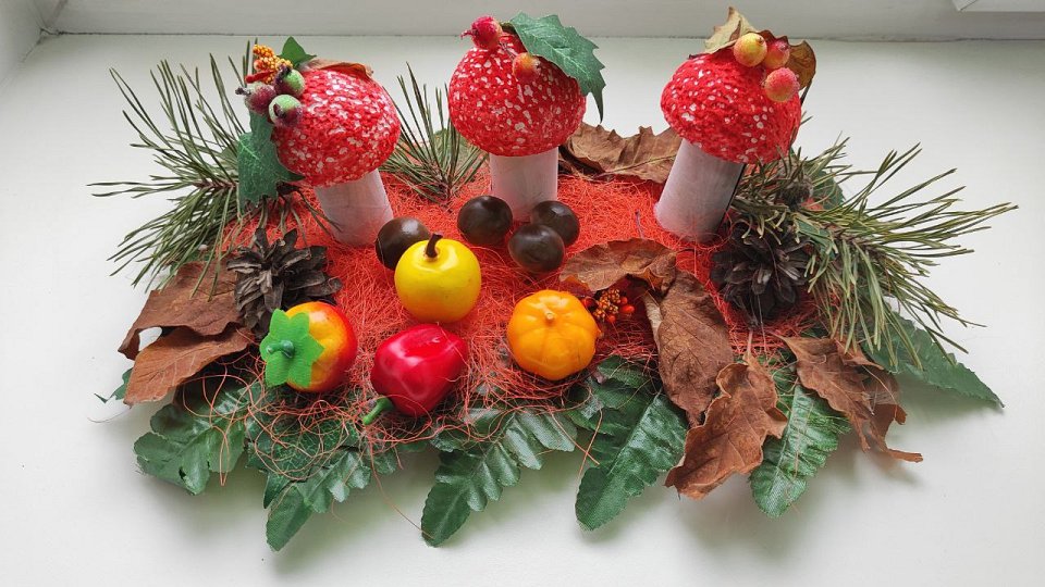 Захар - ученик 1 класса, работа была выполнена в сотрудничестве с мамой и папой. Были использованы природные материалы, бумага, пенопласт, декоративные фрукты и овощи.