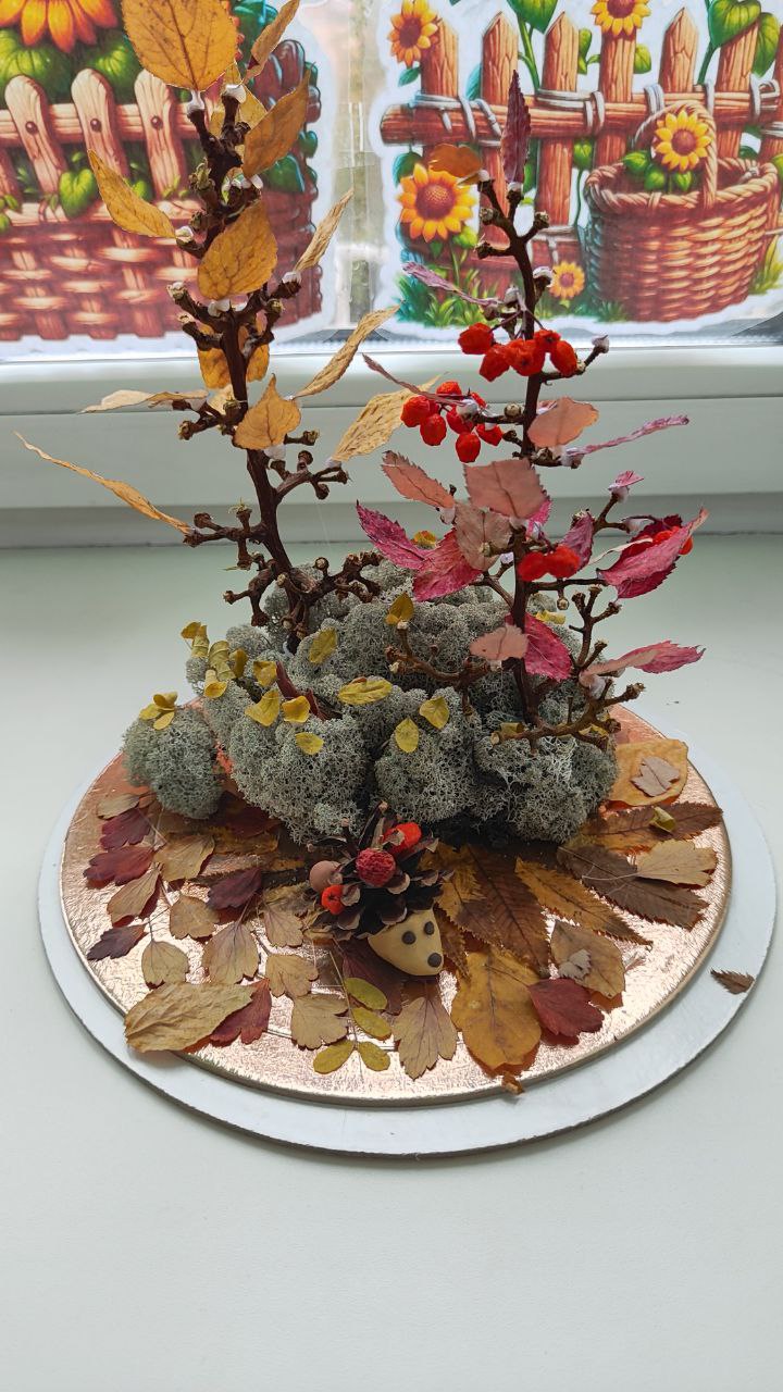 Артём - ученик 1 класса, работу выполнял в сотрудничестве с родителями, из природных материалов, пластилина, клея.