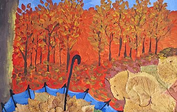 Работа написана в технике мазки, градиент, рельефные мазки, гуашью