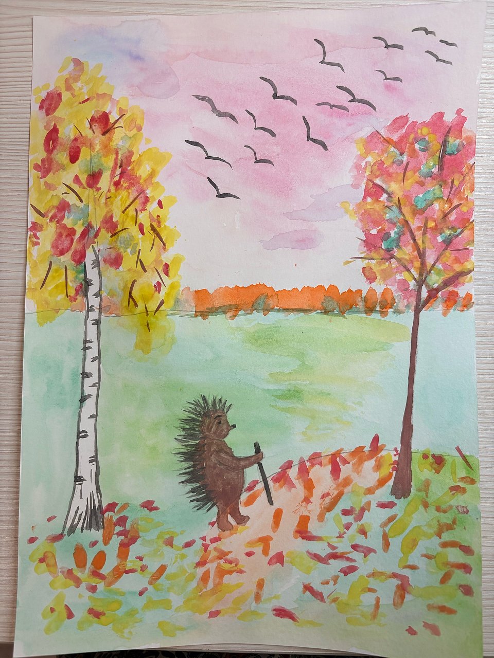 карандаш, краски акварель и гуашь.