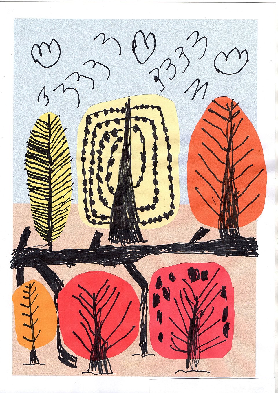 Работа выполнена в технике: аппликация плюс графика.