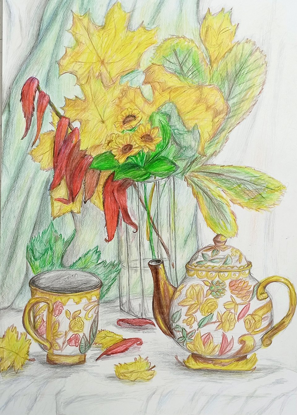 Работа выполнена цветными карандашами, формат А-3, участнице 12 лет, работа с натуры.