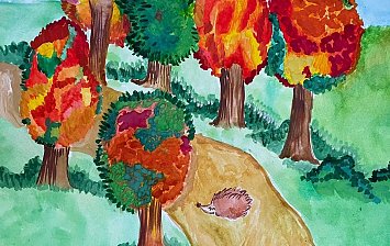 Работу выполнила ученица 5 класса. Работа нарисована с помощью чёрной гелевой ручки, цветных карандашей и маркеров.