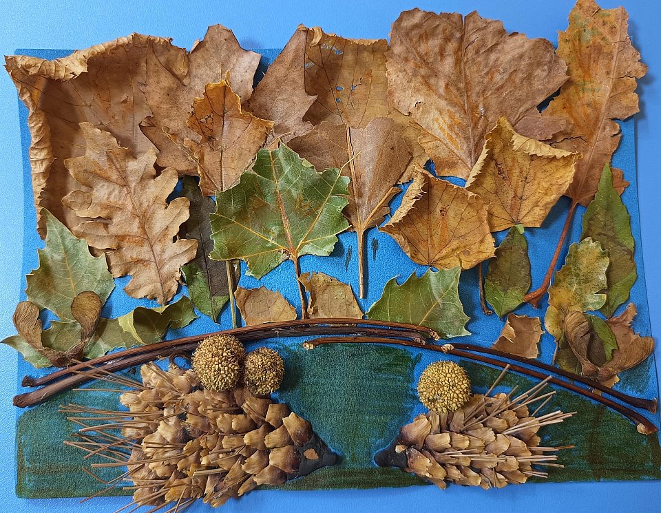 4г. Аппликация из листьев, шишек с использованием клея, пластилина