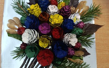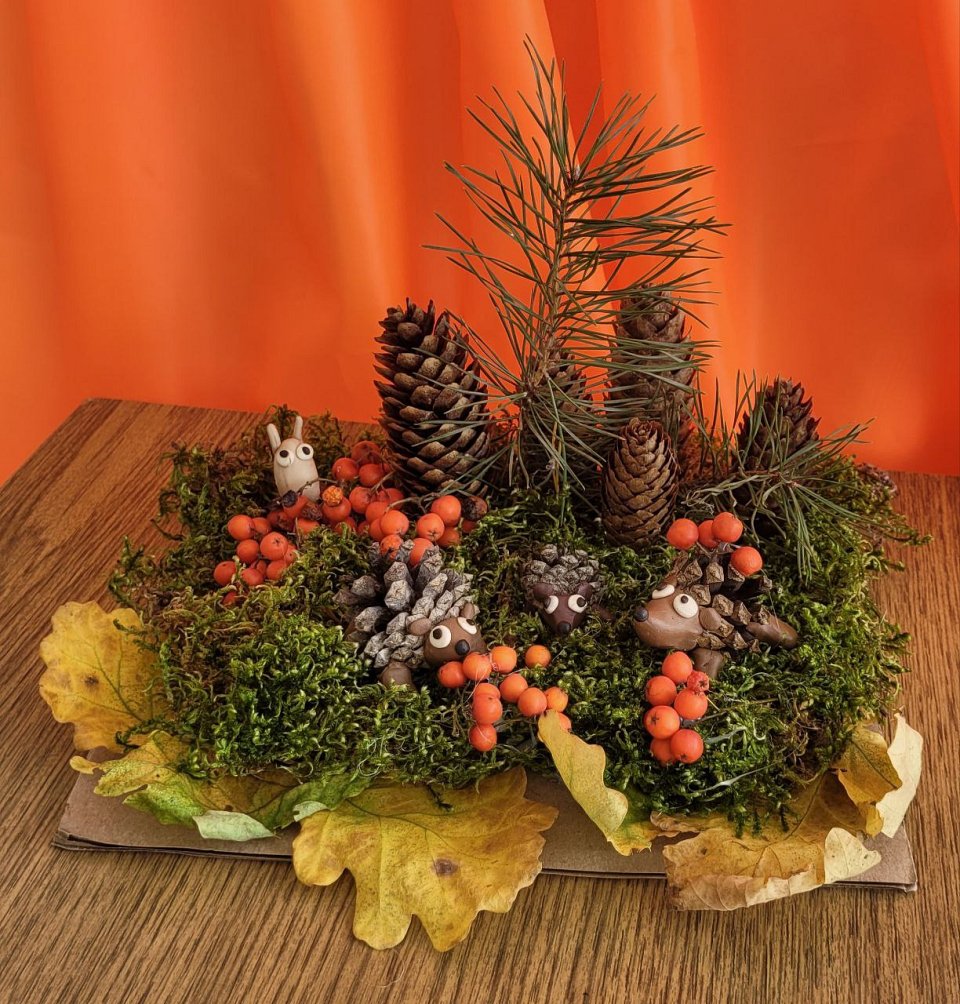 Работа выполнена ребенком с ОВЗ совместно с родителями из природного материала, собранного на семейной прогулке в лесу